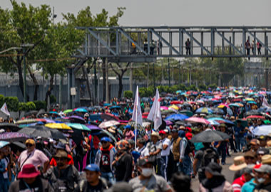 ▲ Tras darse a conocer que la Presidenta no acudiría a la reunión acordada para ayer, integrantes de la CNTE determinaron bloquear el aeropuerto capitalino. Foto Jair Cabrera