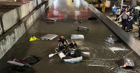 ▲ Una tromba acompañada de actividad eléctrica, granizo y fuertes vientos colapsó anoche la Ciudad de México, al dejar vialidades anegadas, interrupción en el servicio de transporte público, como la línea A del Metro, árboles caídos y miles de personas varadas, ya sea a pie o en sus automóviles. Las mayores afectaciones ocurrieron al oriente de la capital. La línea 3 del Cablebús también interrumpió el servicio por alrededor de una hora. Imagen en Viaducto y Troncoso. Foto Alfredo Domínguez. Nayelli Ramírez y Kevin Ruiz