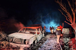 ◀ Una explosión e incendio de contenedores con gasolina proveniente de una toma clandestina ocasionaron la muerte de una persona y heridas a ocho en el municipio de Tetepango. Los tanques estaban sobre cuatro camionetas que quedaron calcinadas. Foto tomada de Facebook Planeta Noticias