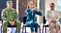 La mandataria estuvo acompañada por Rosa Icela Rodríguez y el secretario de la Defensa. Foto Presidencia