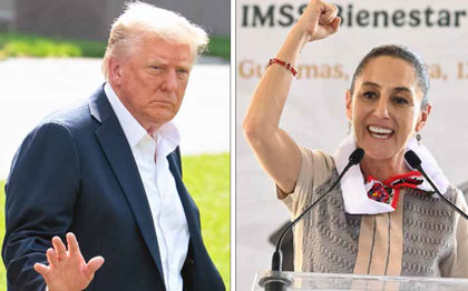 ▲ Desde que empezó su segundo periodo como presidente de Estados Unidos, Donald Trump comenzó a aplicar aranceles tanto a países aliados como rivales, lo que ha afectado a mercados financieros y ha generado temores de una recesión mundial. Ayer, en una carta que publicó en su red social, dirigida a la mandataria Claudia Sheinbaum, anunció la imposición de 30 por ciento a los productos mexicanos. Ocho de cada 10 dólares de las ventas mexicanas a ese país no pagan tarifa. El gobierno resaltó que el pasado 11 de julio se estableció una mesa de negociaciones. Fotos Xinhua y Presidencia