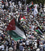 ▲ Miles de personas protestaron en Rabat, Marruecos, contra la ofensiva militar de Tel Aviv en la franja. La vida de 600 mil niños está en riesgo por falta de insumos. Foto Afp. Agencias