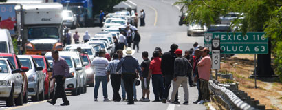 ▲ Las entradas y salidas de una decena de municipios de la zona sur del estado de México permanecieron bloqueadas desde la noche del lunes por taxistas y agremiados a un sindicato de la construcción, presuntamente controlados por La familia michoacana, en rechazo a los operativos de fuerzas federales y estatales que combaten la extorsión. Foto Cuartoscuro / Redacción