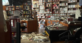 ◀ A dos días de la irrupción de encapuchados en CU, autoridades hicieron un recorrido en el MUAC y la librería Julio Torri, que seguían acordonados para permitir los trabajos periciales. Foto Luis Castillo /