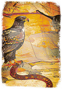 En ese lugar más de 100 familias y el tlamacazque fueron testigos del posamiento del águila sosteniendo a su par (ave-serpiente-agua-tierra quemada) sobre la nopalera sostenida por la divinidad Tlaltecuhtli.