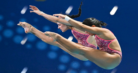 ▲ En la tercera jornada del Campeonato Mundial de Natación, Osmar Olvera y Juan Celaya ganaron el segundo lugar en trampolín de tres metros. Olvera sumó su séptima presea en estas lides, la mayor cantidad para un clavadista mexicano. Alejandra Estudillo y Gabriela Agúndez, en sincronizados plataforma, también subieron al podio. La delegación lleva cinco medallas. Foto Afp. Redacción