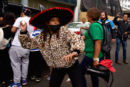 ◀ Un juez de control vinculó a proceso por el delito de discriminación a lady racista, quien deberá pagar una multa de 97 mil pesos, someterse a tratamiento sicológico y disculparse con el policía que agredió en la Condesa. Manifestantes lanzaron huevos luego de que la mujer salió por la puerta trasera. Foto Roberto García Ortiz