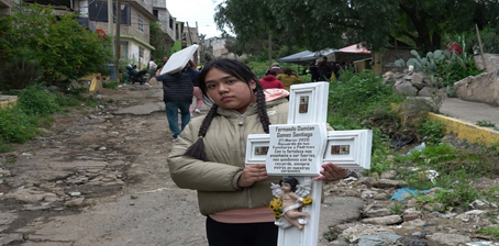 ▲ Entre reclamos de justicia, flores, veladoras y globos blancos, familiares y amigos velaron ayer el cuerpo de Fernando, de cinco años. La abogada del colectivo Amor y Rabia acusó que la madre acudió al DIF y a la Fiscalía General de Los Reyes La Paz, pero no recibió apoyo. Fue hasta el lunes, cuando se presentó en la Fiscalía de Género, que las autoridades actuaron. Informó que, de acuerdo con la necropsia, el menor murió a causa de un traumatismo craneoencefálico. En los juzgados de Neza Bordo se dictó prisión preventiva justifi cada contra los tres detenidos por este caso. Foto Cuartoscuro. Javier Salinas, Corresponsal