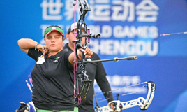 ◀ La jalisciense se coronó en arco compuesto individual y obtuvo el segundo sitio junto con Sebastián García en la prueba de equipos mixtos en los Juegos Mundiales de Chengdú. La atleta se mantuvo así en el segundo puesto de la clasifi cación internacional y alienta esperanzas para la justa olímpica de 2028. Foto Xinhua
