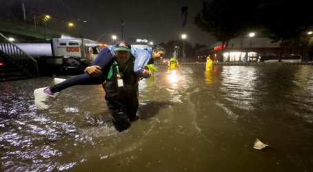 ▲ La tromba provocó una explosión en la línea 2 del Metro por un cortocircuito y el cierre de varias estaciones de las 3 y 5. También, la suspensión provisional del servicio en el AICM, donde hubo encharcamientos en pasillos y salas. Además, anegaciones en calles, automovilistas varados y caída de árboles. Imagen del operativo Tlaloque en Iztapalapa. Foto Alfredo Domínguez. Kevin Ruiz