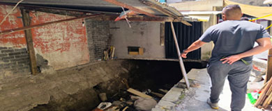 ▲ Un enorme hoyo, que alcanza ya 10 metros de profundidad y casi 15 de largo, se abrió en una vivienda que se localiza sobre la avenida Gran Canal, de la alcaldía Gustavo A. Madero, debido a las intensas lluvias, por lo que sus habitantes se vieron obligados a mudarse. Foto La Jornada