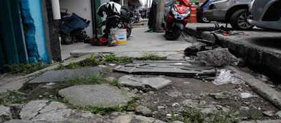 ▲ Las calles de la capital reflejan un abandono evidente al presentar grietas y baches. La Jornada hizo un recorrido por Iztapalapa, Iztacalco y Gustavo A. Madero; en la imagen, la colonia 25 de Julio, ubicada en esta última demarcación, donde también hay hundimientos. Foto Jorge Ángel Pablo García