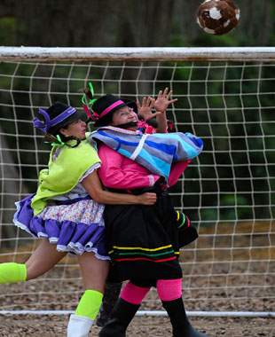 ▲ En una cancha de tierra, con sus coloridas faldas y sombreros, decenas de campesinas de Jenesano, pueblo enclavado en las montañas de Colombia, disputan el torneo que se celebra cada agosto desde hace 11 años. Para ello, dejan de lado las tareas domésticas y del agro.