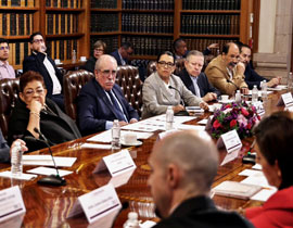 ◀ Asistieron ocho de 11 consejeros, Pablo Gómez y la titular de la SG, Rosa Icela Rodríguez, entre otros funcionarios. Foto Gobernación /