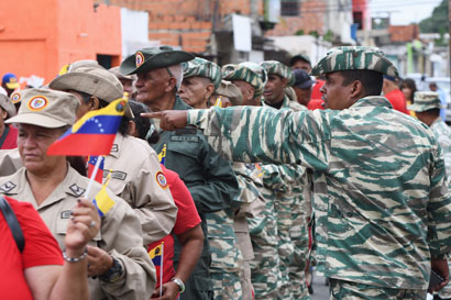 ▲ El presidente de Venezuela, Nicolás Maduro, activó las Unidades Comunales de Milicia, con lo que desplegó a 4 millones de reservistas activos más otros 3 millones alistados durante las semanas recientes. Si hubiera alguna agresión, se pasará a la etapa de lucha armada planificada, organizada, de todo el pueblo contra la arremetida imperial, declaró. Foto Afp