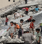 ▲ Por tercer día consecutivo, Israel bombardeó un edifi cio residencial de gran altura en la ciudad de Gaza. Imagen tomada cerca del multifamiliar destruido el sábado. Foto Xinhua