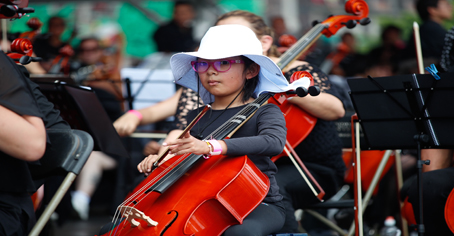 ▲ La diversidad del arte musical se hizo patente con el animado concierto de la Orquesta Monumental Metropolitana ayer en el Zócalo de la Ciudad de México. La presentación reunió a más de 2 mil 600 músicos de 22 agrupaciones, con edades de 6 a 90 años, provenientes de la capital y del estado de México e Hidalgo. Interpretaron piezas de la gran música de concierto, ópera, tango, pop y cumbia, así como rock nacional y en inglés. Foto Cristina Rodríguez. Reyes Martínez Torrijos