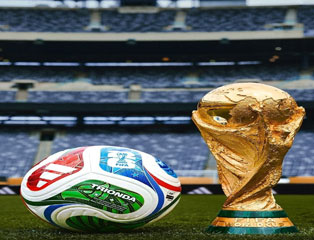 ▲ La FIFA presentó ayer la pelota que será usada durante la copa de futbol del próximo año, la cual destaca por tener los colores verde, azul y rojo, además de las imágenes de un águila, una estrella y una hoja de maple, que representan a los tres países anfitriones, así como tecnología que da información de cada uno de sus movimientos para ayudar a los árbitros en la toma de decisiones. Foto Afp