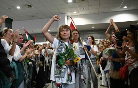 ▲ A su llegada a Atenas, la activista Greta Thunberg pidió no centrar la atención en los abusos contra las personas que iban en la Global Sumud Flotilla y que fueron detenidas por Israel, sino en el genocidio que es transmitido en directo. Sobre la burla de Trump hacia ella, al calificarla de “loca” y declarar que tiene “problemas de ira”, la sueca reviró: “el mundo necesita muchas más mujeres jóvenes enojadas”. Ayer, otros 170 voluntarios de la misión fueron deportados y quedan 138 en prisión. Foto Afp