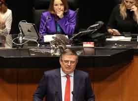 ▲ En su comparecencia ante el pleno del Senado, el secretario de Economía, Marcelo Ebrard, manifestó un optimismo razonable sobre la permanencia del acuerdo de libre comercio de América del Norte y afirmó que gracias a éste vendrán para México nuevas oportunidades. Foto M. Peláez / A. Becerril y G. Saldierna