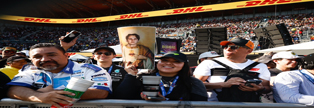 ▲ Ante la ausencia de Checo Pérez, el regiomontano –piloto de pruebas de McLaren– acaparó la atención. Las inmediaciones del autódromo volvieron a ser conflictivas entre baches y vienevienes. Foto Víctor Camacho J. Vázquez y A. Aceves