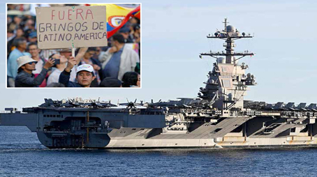 desmantelar organizaciones criminales y combatir el narcotráfico. El grupo de ataque actualmente se encuentra en el Mediterráneo. En el recuadro, protesta en Bogotá, durante un mitin del presidente Gustavo Petro sobre el proceso constituyente que impulsa su gobierno. En la Plaza de Bolívar, el mandatario calificó las sanciones de