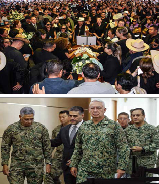 ▲ Miles acudieron a las exequias del presidente municipal de Uruapan, Carlos Manzo. Abajo, conferencia de prensa de integrantes del gabinete de seguridad, con la presencia de Raymundo Pedro Morales (Semar), Omar García Harfuch (SSPC) y Ricardo Trevilla Trejo (Defensa). Fotos Marco A. Duarte y Marco Peláez