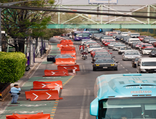 ▲ La ciclovía que se construye en calzada de Tlalpan la convirtió ya en un tapón intransitable. Pese a que en algunos tramos se permite circular a 80 kilómetros por hora, hoy eso es imposible, lamentan conductores. Señalan que la zona más caótica es a la altura de San Antonio Abad. Una ciclovía no funciona aquí, reprochan. Foto Yazmín Ortega. Josefina Quintero
