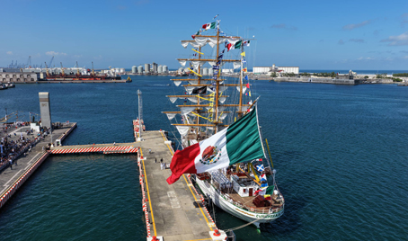 ▲ La presidenta Claudia Sheinbaum expresó en el puerto de Veracruz que México debe estar alerta para defenderse de cualquier intención de injerencia externa.