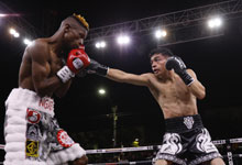 ◀ José Salas derrotó al sudafricano Landile Ngxeke, con lo que se hizo del cinturón mundial de peso gallo de la Federación Internacional de Boxeo. La contienda se realizó anoche en la explanada de la alcaldía Gustavo A. Madero, donde los aficionados no dejaron de apoyar al mexicano. Foto Germán Canseco