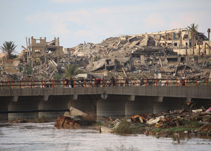 ▲ Autoridades de Gaza informaron que los decesos a causa de la tormenta Byron subieron a 26, mientras 27 mil familias desplazadas quedaron a la intemperie. Se estiman daños por casi 4 mil millones de dólares y afectaciones a miles de casas de campaña. En la imagen, crecida del agua por las fuertes lluvias en el campo de refugiados de Nuseirat, cerca de edificios y viviendas destruidos por Israel. Foto Afp / Reuters, Afp, Sputnik y Europa Press