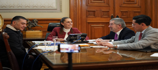 ▲ Durante la conversación con Donald Trump, la mandataria estuvo acompañada de los titulares de Seguridad, Omar García Harfuch, y de Relaciones Exteriores, Juan Ramón de la Fuente, así como del subsecretario para América del Norte, Roberto Velasco. Foto Presidencia