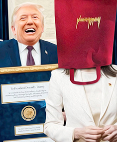 En ella capturó justo el punto clave. La enorme carga simbólica que tiene la imagen rebasa los límites de las declaraciones anodinas ofrecidas por el Instituto Nobel: “aunque la medalla o el diploma cambien de propietario, eso no modifica para nada la identidad de la persona o la organización a la que el Premio Nobel de la Paz fue otorgado”. Para el colmo!, la premiada declaró: “en reconocimiento (a Trump) con su singular compromiso con nuestra libertad (la de los venezolanos)”. Estas declaraciones son inauditas, en primer término porque los otorgantes del premio degradaron el galardón, y la premiada por aceptar y conceder la humillación que infligió una potencia extranjera (EU) a su país, tras el secuestro del presidente de la hermana República de Venezuela, Nicolás Maduro, ordenado por un violador de las leyes internacionales.
