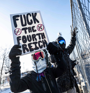 apagón económicoy movilizaciones en Mineápolis contra la violenta aplicación de las leyes migratorias. En solidaridad, cerraron escuelas y unos 700 negocios en todo Minesota. En la imagen, manifestación frente al edificio federal Bishop Henry Whipple, sede de oficiales del ICE. Foto Afp