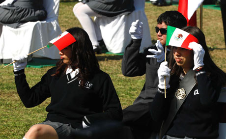 ▲ En una ceremonia en que los rayos del sol cayeron a plomo sobre los asistentes en el Campo Marte, la presidenta Claudia Sheinbaum destacó que el lábaro patrio, más que un símbolo, es una epopeya nacional que une el pasado indígena, la lucha independentista y la construcción republicana en una sola imagen. Durante el acto, la mandataria presenció el abanderamiento de 920 escoltas de estudiantes de escuelas secundarias y de nivel medio superior del país. Foto Germán Canseco / Emir Olivares