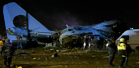 ▲ Al menos 15 personas murieron luego de que un avión militar que transportaba dinero en efectivo se estrelló al aterrizar en el aeropuerto de El Alto, cercano a La Paz, procedente de la ciudad de Santa Cruz. Tras el accidente, decenas de personas acudieron a la zona del siniestro para iniciar la rapiña del papel moneda que quedó en el suelo y que era propiedad del Banco Central de Bolivia. Según las autoridades, éste carece de valor. La policía tuvo que dispersar a la muchedumbre con gases lacrimógenos. Foto Afp. Agencias