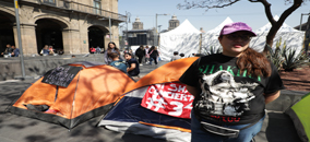▲ Odalis fue la primera fanática en llegar al Zócalo con el fin de ganar un lugar privilegiado para el concierto de Shakira que tendrá lugar hoy a las 8 de la noche. Foto Jair Cabrera. Kevin Ruiz
