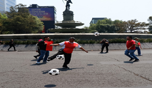 ▲ En su segundo día de protestas, la disidencia magisterial bloqueó una de las principales vías de la capital, desde la glorieta de la Diana hasta el Metro Hidalgo, y aprovechó para jugar futbol. Foto Germán Canseco