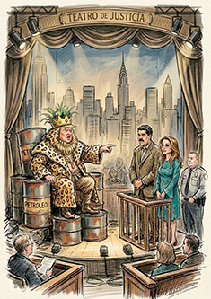 l juicio a Nicolás Maduro y su esposa, Cilia Flores, en Nueva York no es sino un gran teatro montado por los intereses imperiales que carecen de justicia y ética. Y es el mismo mandatario estadunidense, Donald Trump (él sí con 34 cargos criminales y acusado de pedofilia por su relación con Epstein), quien se atreve jactanciosamente a señalar que los secuestrados por un comando de su país son culpables. Dicho eso sin morderse la lengua por los propios cargos que lo deberían tener en prisión y no señalando a otros de incumplimiento de la ley.