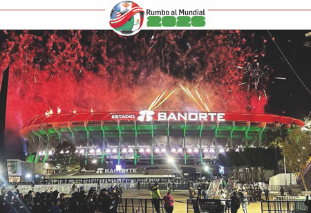 ▲ Un espectáculo de luces dio la bienvenida al remozado estadio. La selección de Portugal fue la invitada de lujo. Sobre estas líneas, protesta de familiares de desaparecidos. Fotos Jair Cabrera, Germán Canseco y Víctor Camacho