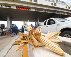 ◀ El Frente Nacional para el Rescate del Campo aceptó reanudar conversaciones con la condición de que el secretario particular de la Presidenta dirija el encuentro este viernes, no el titular de Agricultura. Ayer hubo bloqueos en BC, Sinaloa (en la imagen), Guanajuato, Jalisco, Chihuahua y Tamaulipas. En Tlaxcala denunciaron que la policía estatal los reprimió. Foto Noé Mascareño /
