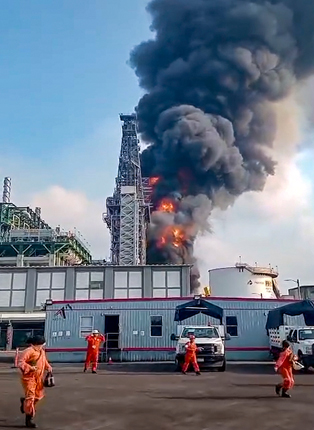 ▲ Pemex informó ayer que el fuego se originó en una bodega de almacenamiento de coque de la Refinería Olmeca, por lo que activó protocolos y movilizó a cuerpos de emergencia, y que,