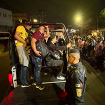 ▲ Pobladores de la localidad purépecha de Michoacán conmemoraron ayer otro aniversario de la expulsión de los talamontes que saqueaban sus bosques de pino y oyamel. Recordaron que en abril de 2011 respondieron con piedras y palos a la agresión de la delincuencia, mientras ahora cuentan ya con una policía comunitaria equipada con rifles de alto calibre, vehículos blindados, camuflaje táctico y dispositivos antidrones que desfiló por los cuatro barrios. Foto Enrique Castro Sánchez / Enrique Castro